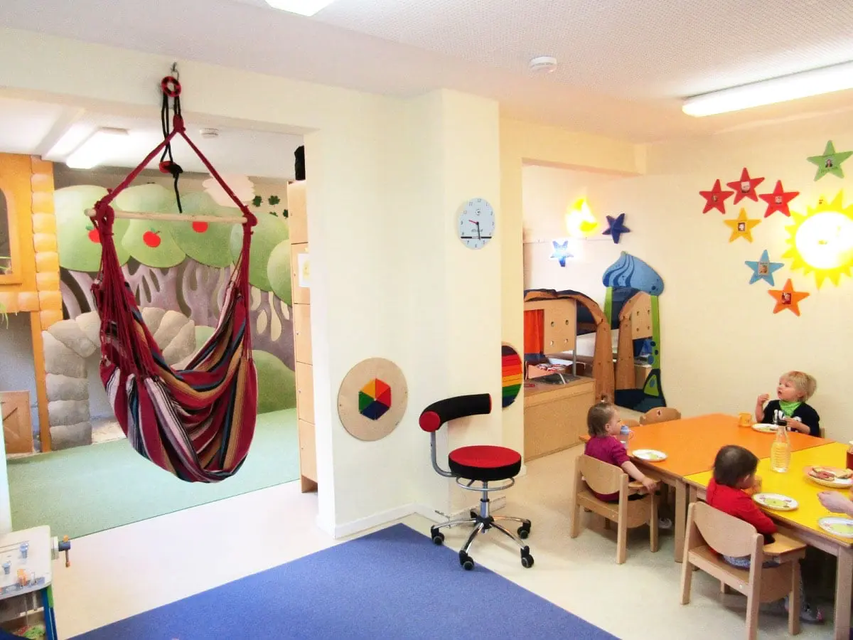 Unsere Gruppenräume sind altersgerecht eingerichtet und bieten eine warme, geborgene Atmosphäre. In einem liebevoll vorbereiteten Flur laden ein inspirierender Forscher- und Spielbereich zu kreativem Entdecken ein. In unserem Garten können die Kinder forschen, toben und entdecken. Beim Bepflanzen und Ernten von Kräutern, Obst und Gemüse erleben sie die Natur hautnah und entdecken mit Freude ihre Umwelt.